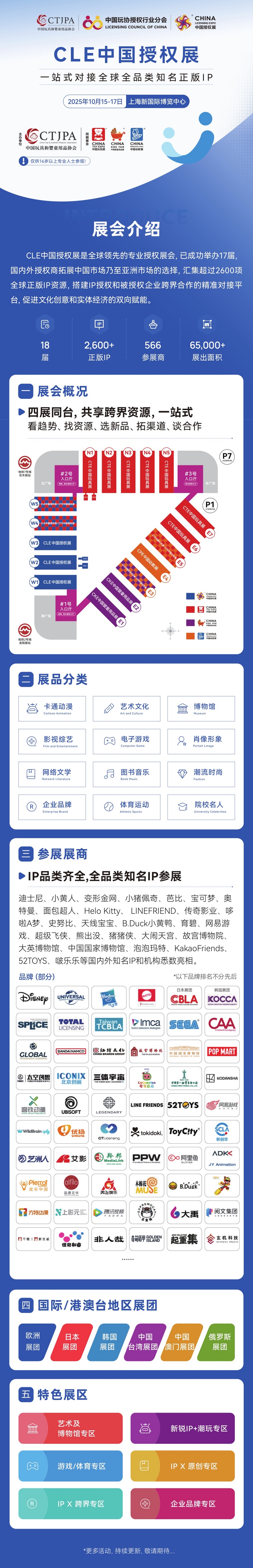 CLE中国授权展云集迪士尼、宝可梦、故宫博物院、泡泡玛特等2600+全球知名IP与授权机构,九大海外及港澳台展团齐聚,构筑全球授权产业盛宴。