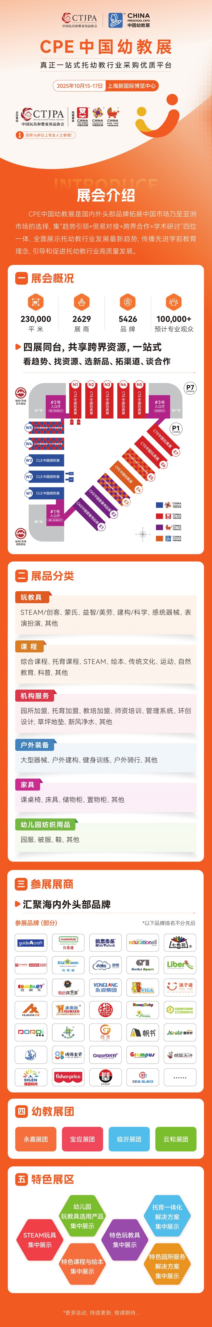 10月15日至17日,由中国玩协主办的CTE中国玩具展、CLE中国授权展、CKE中国婴童展、CPE中国幼教展将在上海新国际博览中心全馆盛大举行。本届展会以“共享跨界资源·引领创新趋势”为主题,汇聚41个国家和地区、2629家展商、5426个品牌,展览面积高达23万平米。预计10万+专业观众和1万+海外买家齐聚申城,再度掀起行业年度盛会高潮。