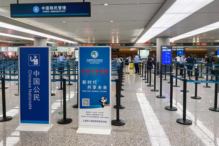今年,上海首次将电子口岸签证适用于进博会外籍展客商,并在机场口岸开通16条进博会边检专用通道,实现即到即办、快速通关。对需办理临时入境许可的人员,提供“审核—签发—入境”一体化服务。