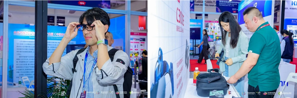 AI+AR智能眼镜体验区: 聚焦下一代人机交互,李未可、谷东智能等企业带来了轻量化全彩光波导、Micro OLED微显示、多模态语音-视觉交互等技术,加速了AI+AR眼镜从实验室走向规模化应用。