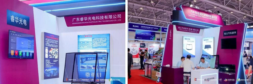 汽车智能调光玻璃创新技术展示区:集中展示了汽车调光玻璃的原料体系与尖端工艺,体现了未来智能汽车座舱向智能化、沉浸化和安全性发展的核心趋势。