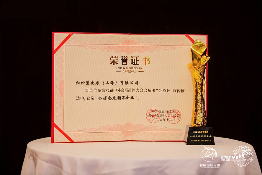 近日,在2025第六届中外会展品牌大会上,纽伦堡会展(上海)有限公司凭借卓越的全球资源整合能力、前瞻性的行业布局以及对会展创新发展的持续推动,荣获2025年度中外会展“金樽杯”全球会展领军企业奖项。这一权威荣誉,充分肯定了公司在推动会展产业国际化、专业化进程中的引领作用,也彰显了其作为中外产业合作重要桥梁的行业价值。