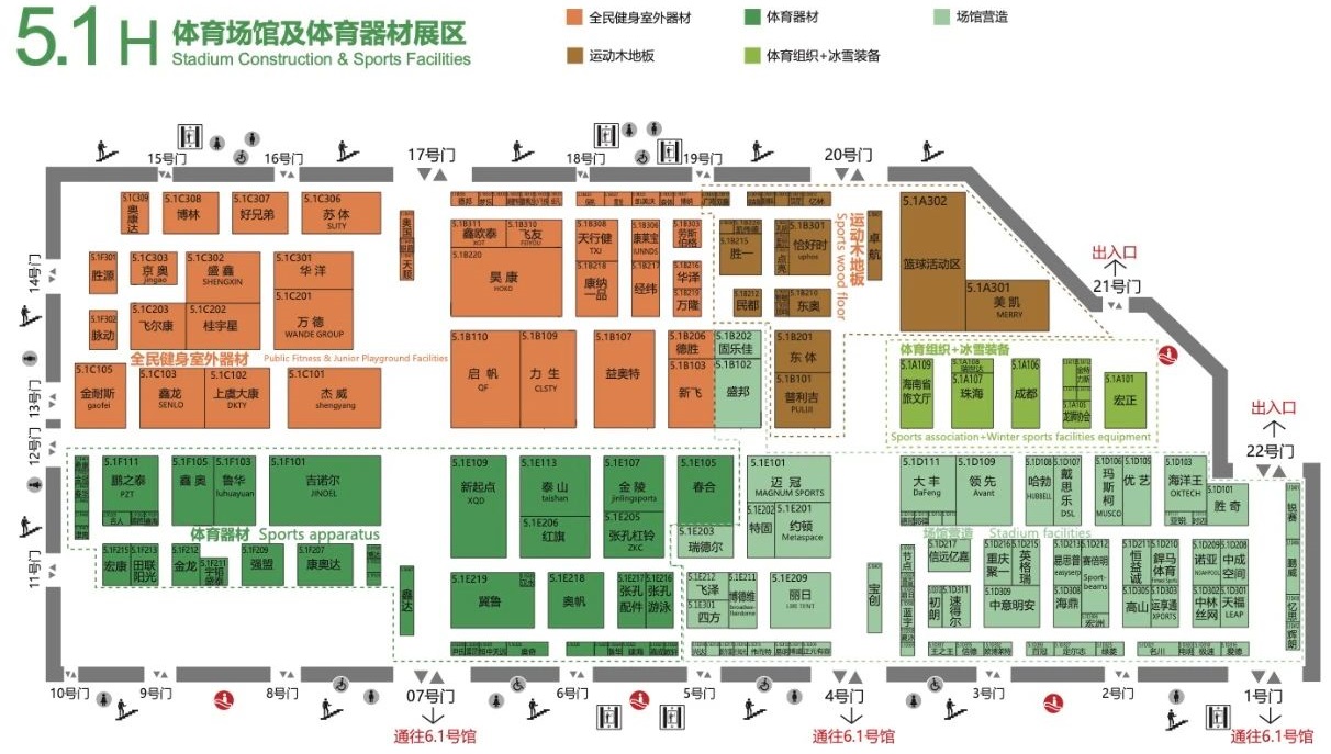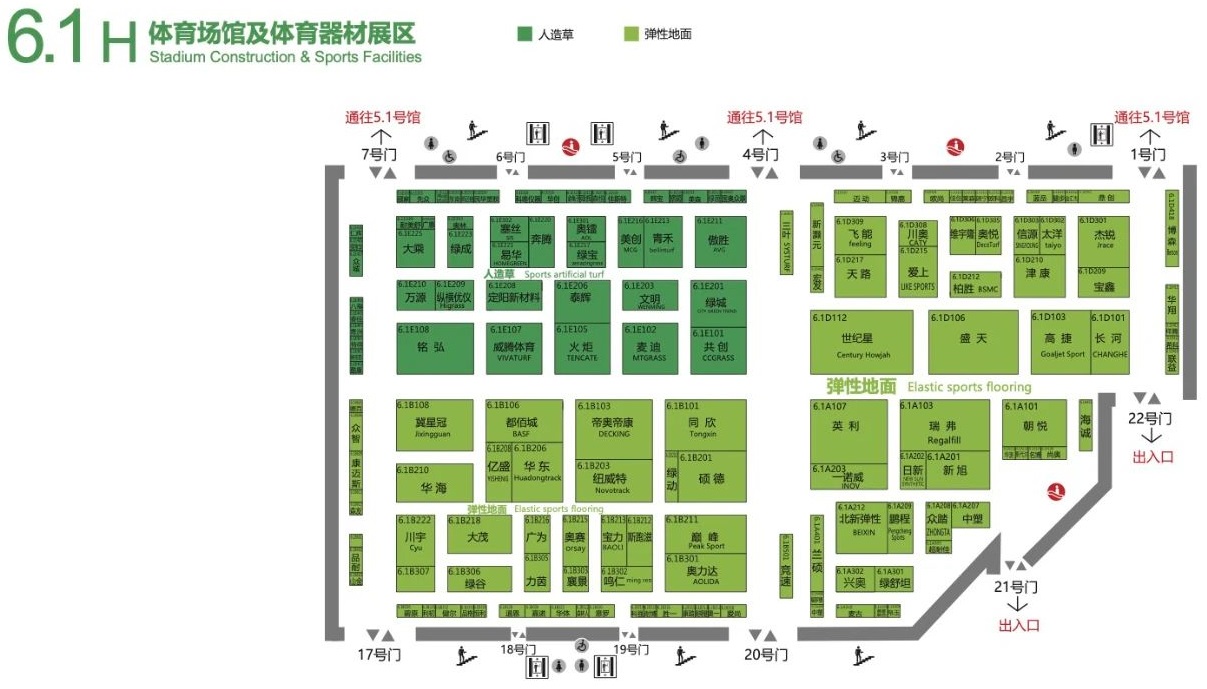 2021体博会体育场馆及体育器材展区占据国家会展中心5.1号馆和6.1号馆,总展览面积超过40000平米,参展商包括戴思乐、宏正、诺亚、盛邦、哈勃、玛斯柯、赛倍明、易思普、迈冠、约顿、新飞、美凯、普利吉、金陵、吉诺尔、金耐斯、高捷、盛天、杰锐、英利、瑞弗、同欣、帝奥帝康、硕德、都佰城、利达、纽威特、铭弘、绿城、傲胜、麦迪、青禾、博德维等在内的三百余家知名企业和品牌,涵盖弹性运动地面、人造草、场馆营造、体育器材、体育组织、冰雪装备、运动木地板7大细分品类。