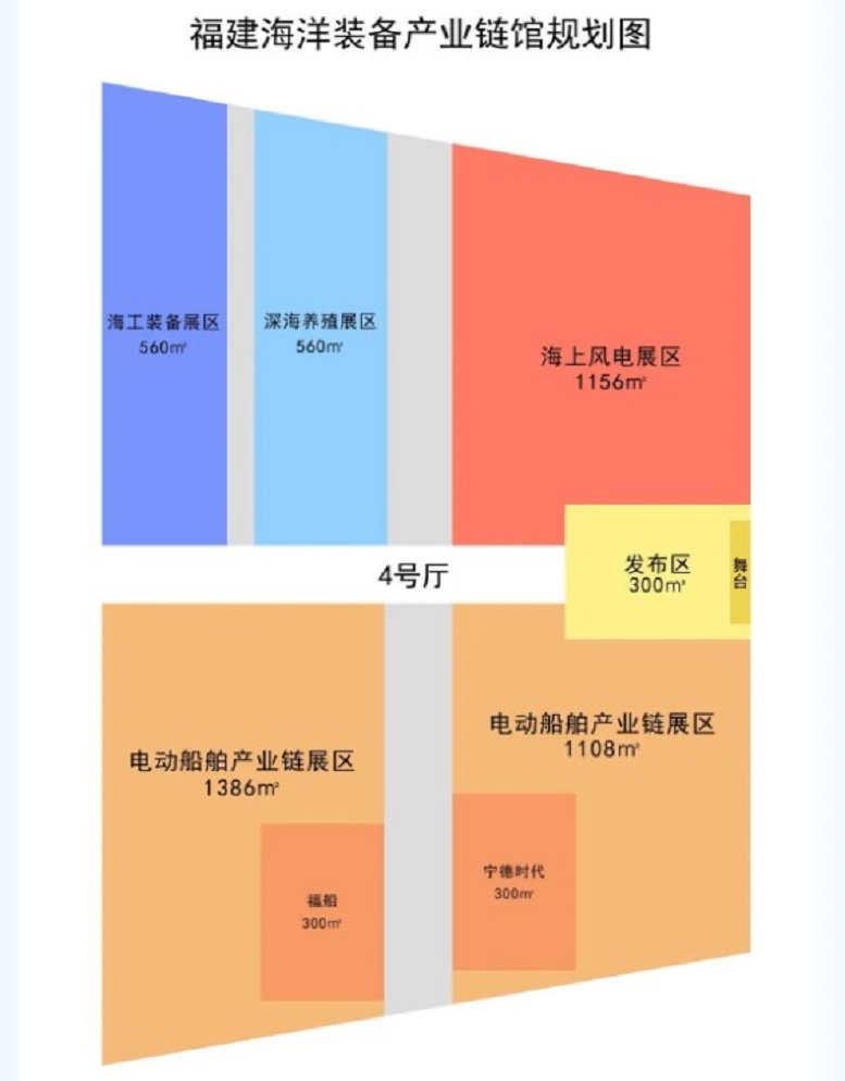 福建馆设四大展区,包括电动船舶产业链展区、海上风电展区、海工装备展区以及深海养殖展区,参展面积达9000平米,与去年相比实现了翻倍增长。