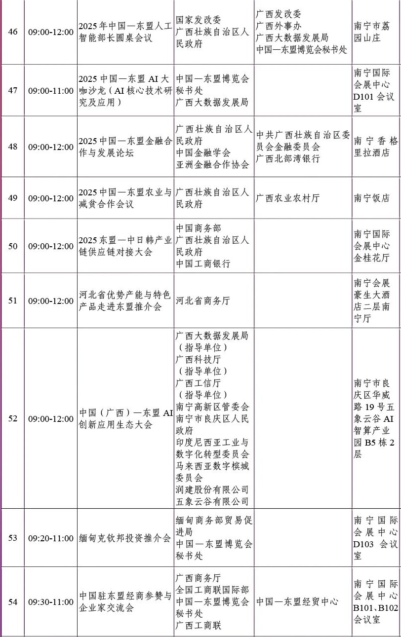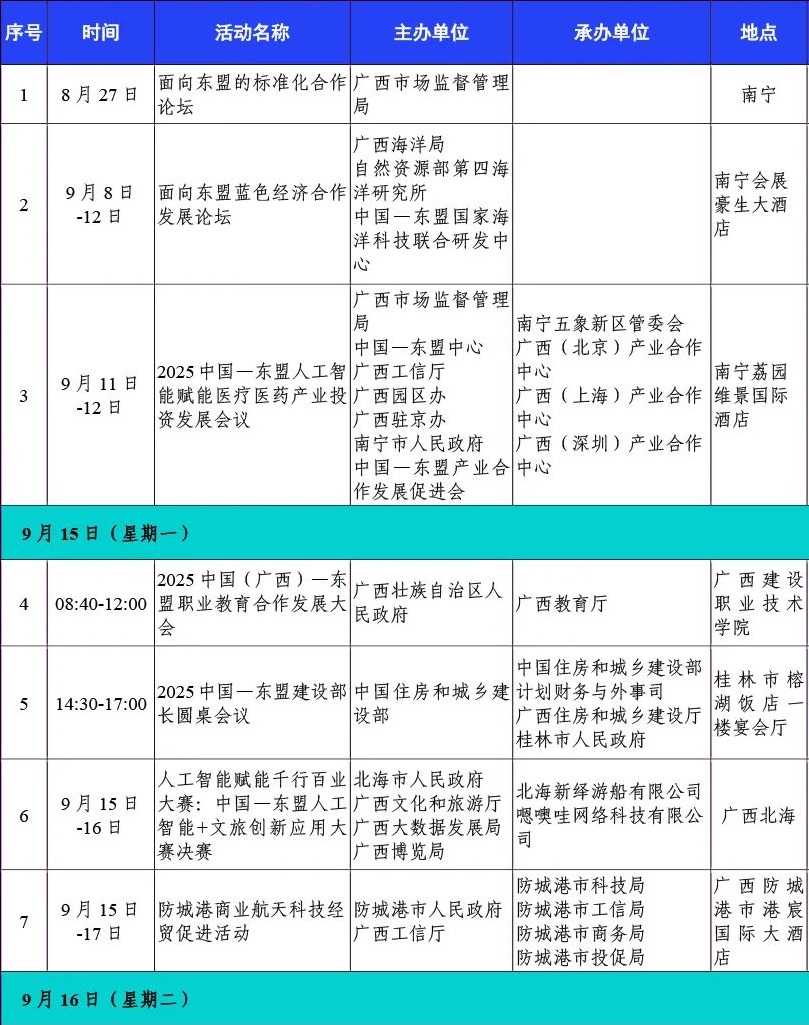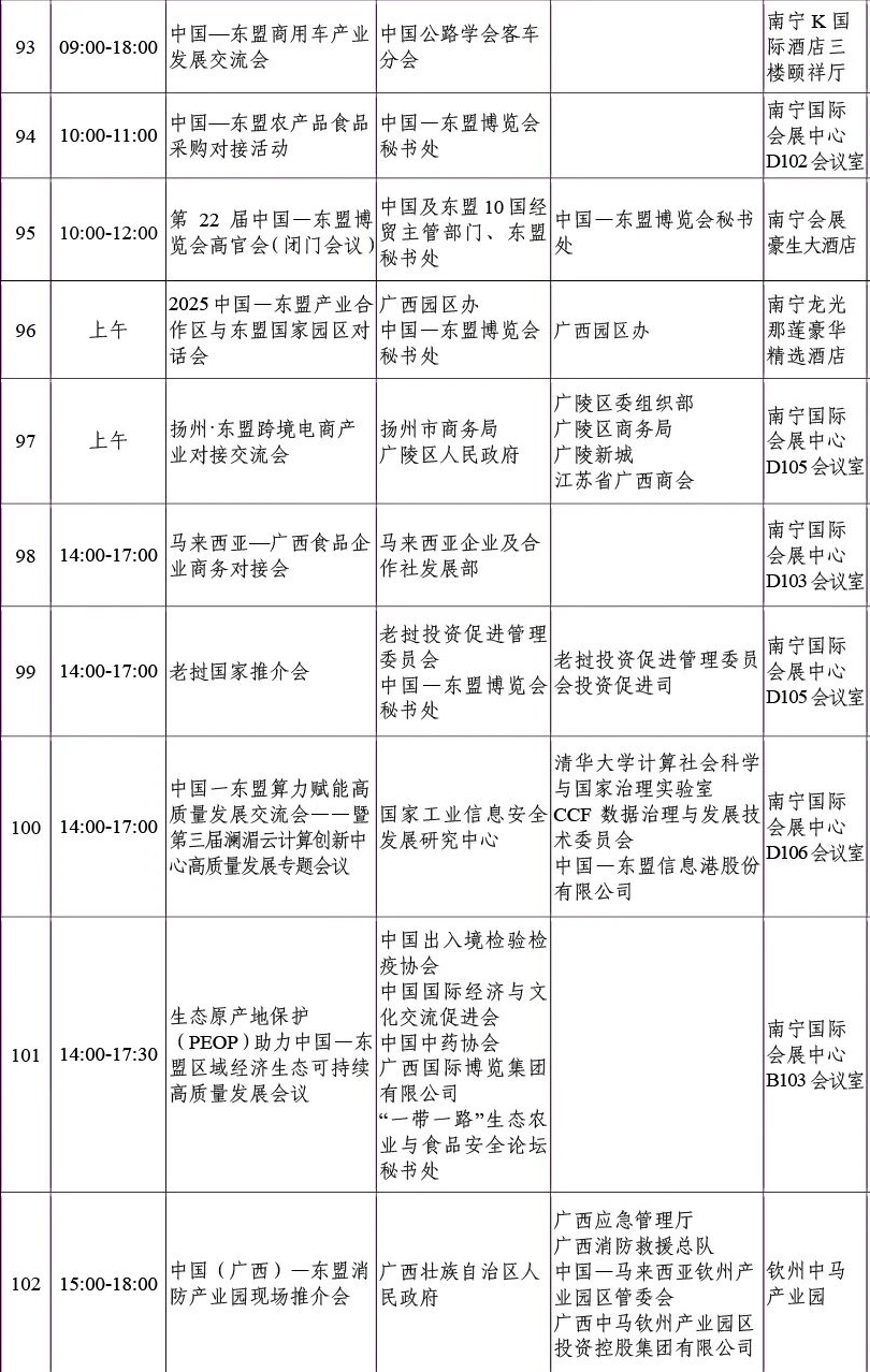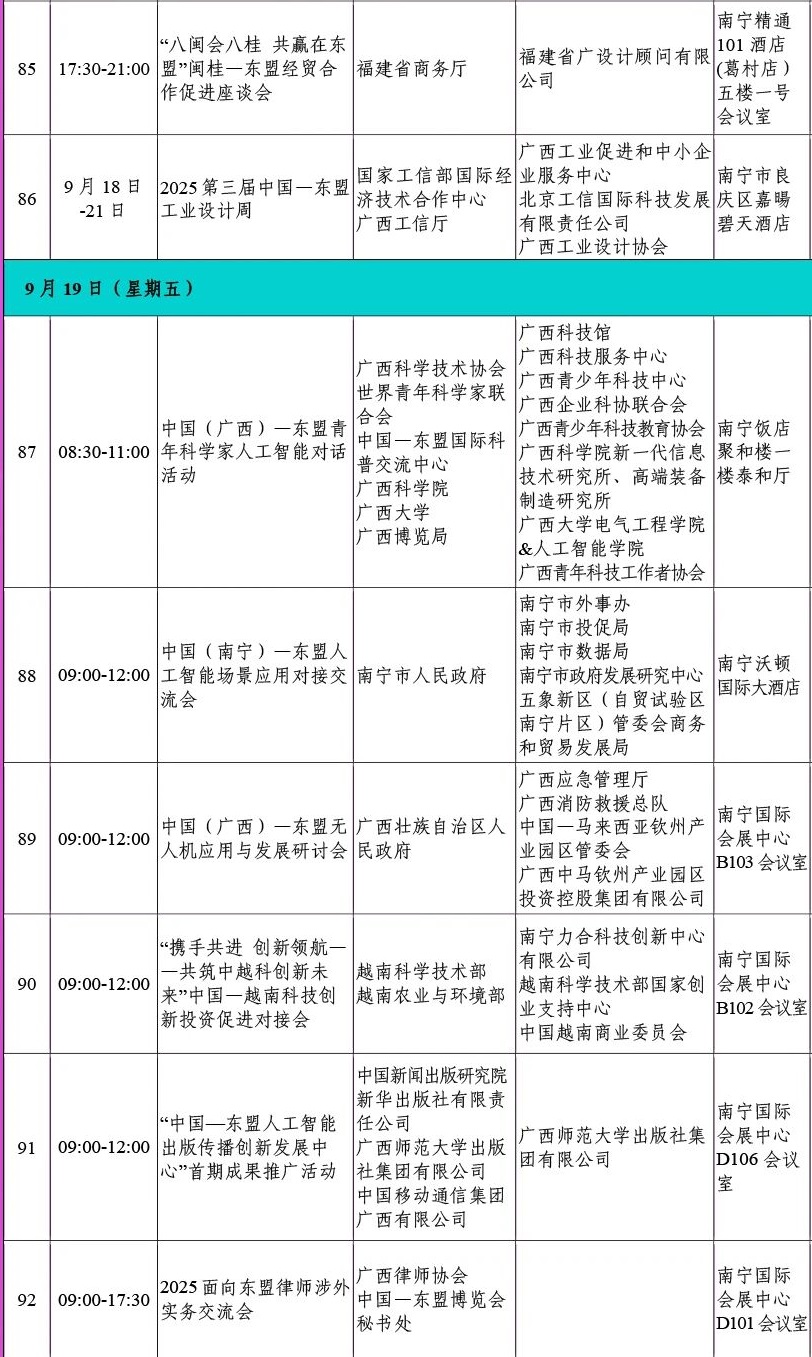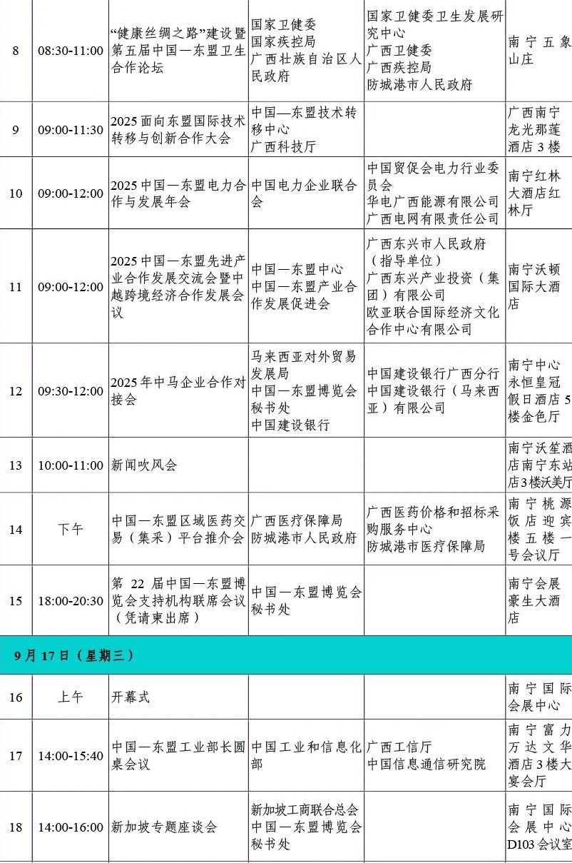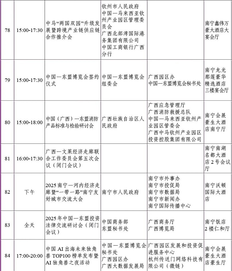 第22届中国—东盟博览会同期重要活动初步安排
