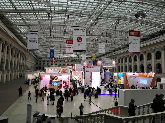 莫斯科的 Gostiny Dvor(俄语:Гостиный двор,意为“商客庭院”)是一座具有悠久历史的建筑,现已改建为一座现代化的贸易展览中心。